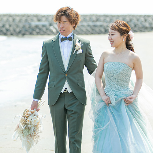 ロケーション撮影、新郎新婦⾐裳(各1点)、新婦ヘアメイク、台紙付き写真1枚、アクセサリー・ブーケ・ブートニア、撮影⼩物