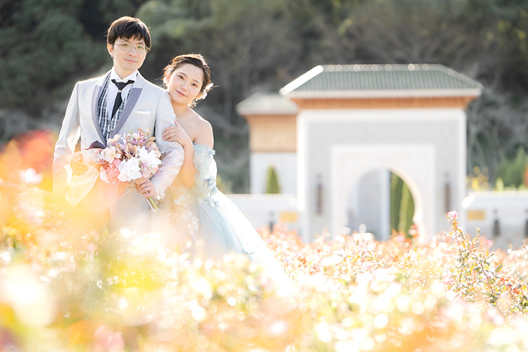 広大な敷地に広がる「ウェルカムガーデン」や「ローズテラスとバラ回廊」など、まるで海外のようなロケーションで、絵になる一枚を残すことが叶います。