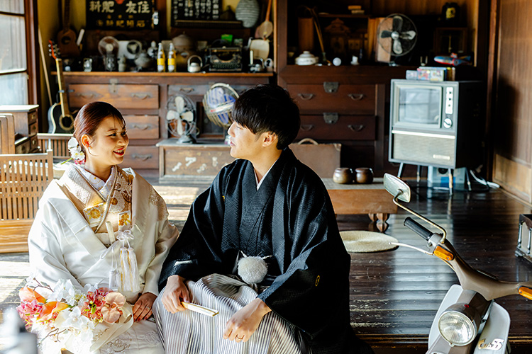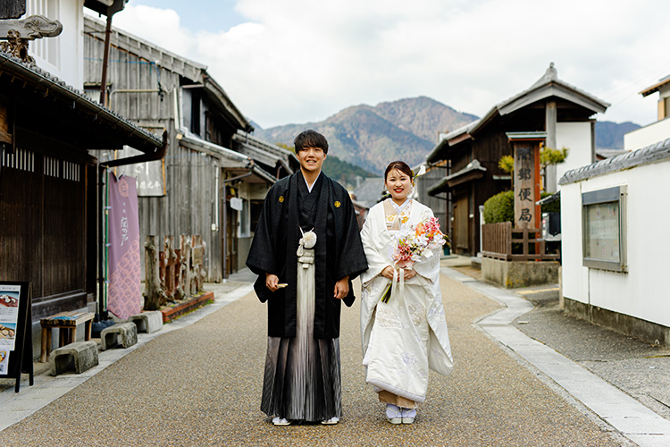 歴史ある街並みが広がるレトロな空間は、和装との相性も抜群です。