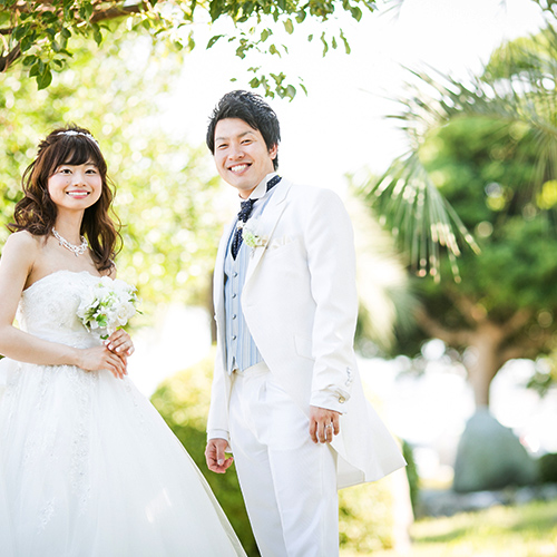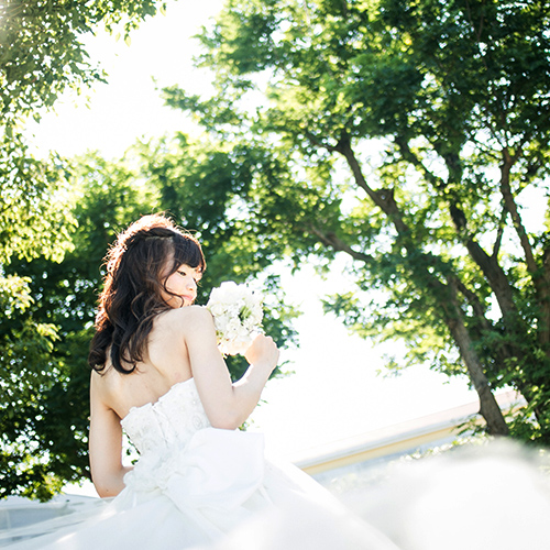 ロケーション撮影、新郎新婦⾐裳(各1点)、新婦ヘアメイク、台紙付き写真1枚、アクセサリー・ブーケ・ブートニア、撮影⼩物