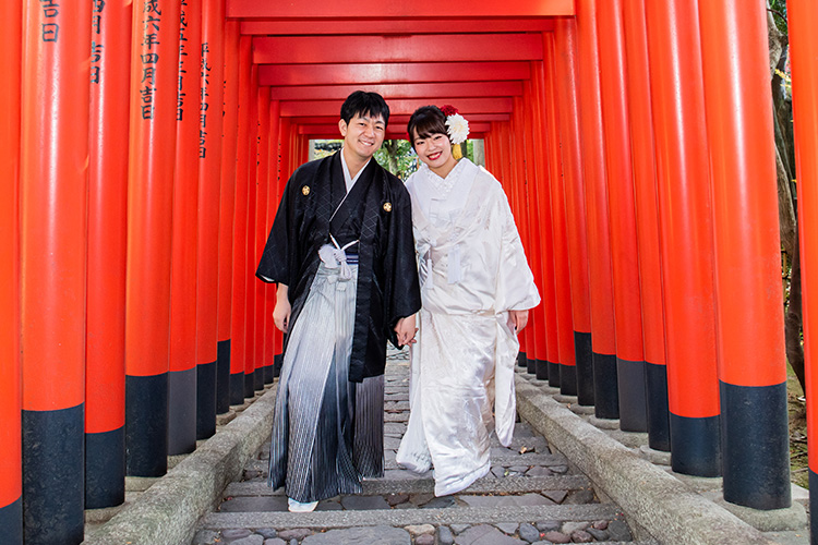 鮮やかな鳥居が連なる参道は、周辺の緑とのコントラストが美しく、色鮮やかなお写真を撮影できます。